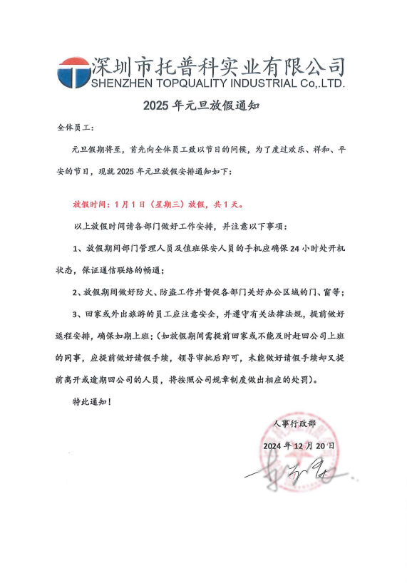 祥龍賀瑞辭舊歲,玉兔回宮迎新年!值此元旦佳節(jié)來臨之際,根據(jù)國家法定節(jié)假日規(guī)定,并結(jié)合本公司實(shí)際情況,現(xiàn)將元旦放假安排通知如下: