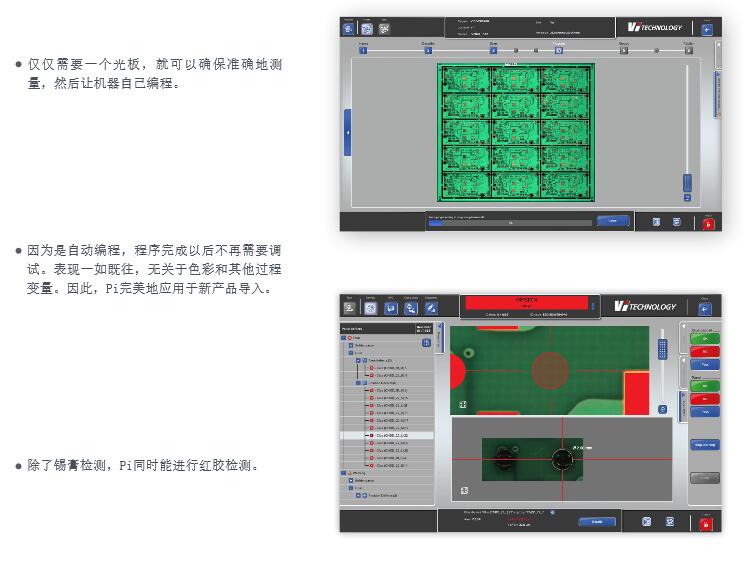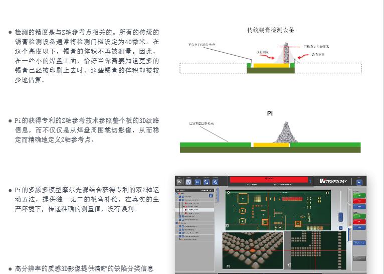 VI 3D錫膏檢測(cè)設(shè)備 PI Series 1. 自動(dòng)編程可用于新產(chǎn)品的檢測(cè) 2. 除錫膏檢測(cè)外PIE也可進(jìn)行固定膠檢測(cè) 3. 通過(guò)面積區(qū)域比率可實(shí)現(xiàn)自動(dòng)分焊盤(pán) 4. 3D超大圖像檢查更便于使問(wèn)題判斷 5. 通過(guò)SIGMA分析技術(shù),離線(xiàn)SPC,嵌入式 SPC 實(shí)現(xiàn)實(shí)時(shí)程序監(jiān)控