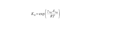 液相線(xiàn)表示系統(tǒng)由液態(tài)轉(zhuǎn)變?yōu)楣虘B(tài)的初始溫度或其逆過(guò)程的終了溫度。通過(guò)液態(tài)、固態(tài)中的Ag原子濃度來(lái)描述這一可逆過(guò)程,從而有: