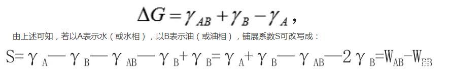 其中,WAB代表“油”與水的黏附功;而WBB則是油的內(nèi)聚功。由此可知,當(dāng)“油”與水的黏附功比這種“油”的內(nèi)聚力還強(qiáng)時(shí),“油”就會(huì)在水的表面上鋪展。參照水在固體表面的鋪展,此時(shí)可以說(shuō)此種“油”類(lèi)的親水性較好。
