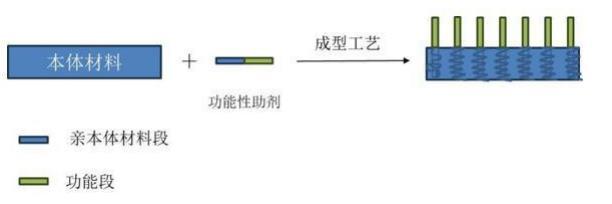 1.脫模劑通過(guò)親本體材料段和功能段嵌段共聚的方式,使得功能助劑經(jīng)親本體材料段牢固地懸掛在本體材料表面。