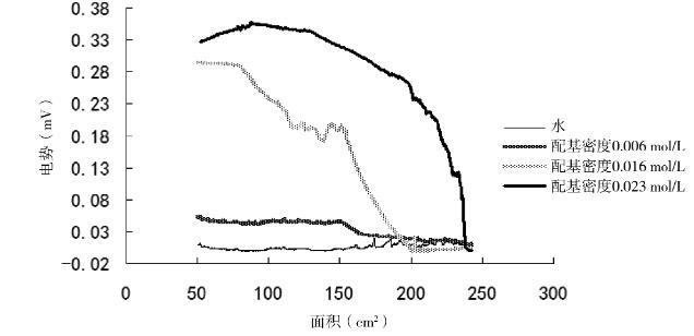 利用表面電勢分析儀研究了不同配基密度對LB膜表面電勢的影響,圖5為不同配基密度DEAE-瓊脂糖LB膜表面電勢圖像。結(jié)果表明隨著配基密度的增加其表面電勢不斷增加,LB膜性質(zhì)越穩(wěn)定。
