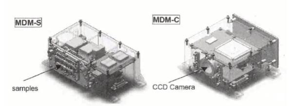日本計(jì)劃在SLATS衛(wèi)星上搭載環(huán)境效應(yīng)探測器,進(jìn)行空間環(huán)境的監(jiān)測及材料暴露試驗(yàn),這是首次在50 km軌道上開展材料暴露試驗(yàn)。該暴露試驗(yàn)通過兩個(gè)搭載模塊實(shí)施,分別為MDM-S和MDM-C(MDM為MateriasDegradation Monitor的縮寫),其中MDM-S是一個(gè)包含9種材料被動(dòng)暴露試驗(yàn)的樣品盒,而MDM-C是CCD,用于對暴露試驗(yàn)中樣品的退化情況進(jìn)行拍照。