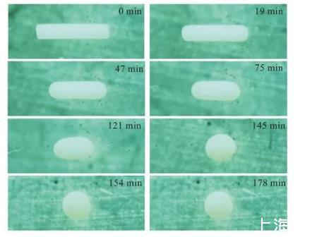 圖3液滴形態(tài)隨時(shí)間演化(實(shí)驗(yàn))