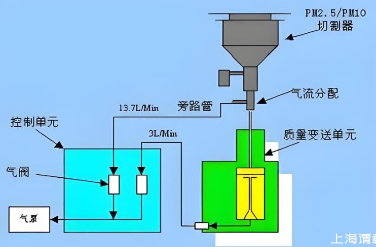 測量原理是基于錐形元件振蕩微量天平原理,核心部件為錐形元件振蕩器。錐形元件振蕩器在其自然頻率下振蕩,振蕩頻率由振蕩器件的物理特性、參加振蕩的濾膜質(zhì)量和沉積在濾膜上的顆粒物質(zhì)量決定。儀器通過采樣泵和流量計,使環(huán)境空氣以一恒定的流量通過采樣濾膜,顆粒物則沉積在濾膜上。測量出一定間隔時間前、后的2個振蕩頻率,就能計算出在這一段時間里收集在濾膜上顆粒物的質(zhì)量,再除以流過濾膜的空氣的總體積,得到這段時間內(nèi)空氣中顆粒物的平均濃度。