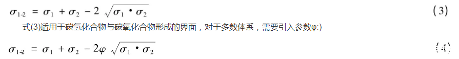 式中φ是與兩液體的摩爾體積及分子間相互作用有關(guān)的參數(shù)。根據(jù)經(jīng)驗,φ值一般為0.5~1.5。對于水與脂肪酸、醇、醚、酮接觸的體系,其值近似為1;水與飽和烴接觸的體系,其值約為0.55;水與芳烴接觸體系的值約為0.7。