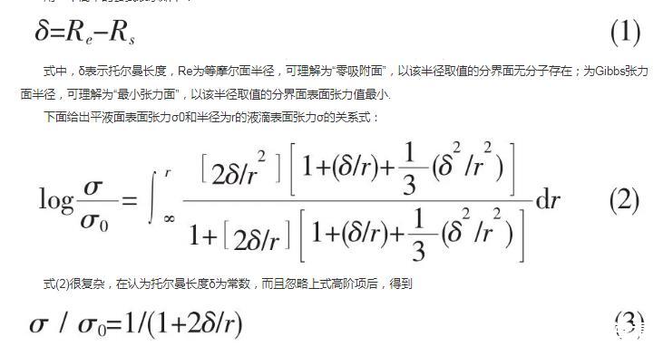 1949年,Tolman在研究表面張力與液滴大小關(guān)系時(shí)引入了后來(lái)被稱為托爾曼長(zhǎng)度的物理量,使問題進(jìn)入定量研究階段。