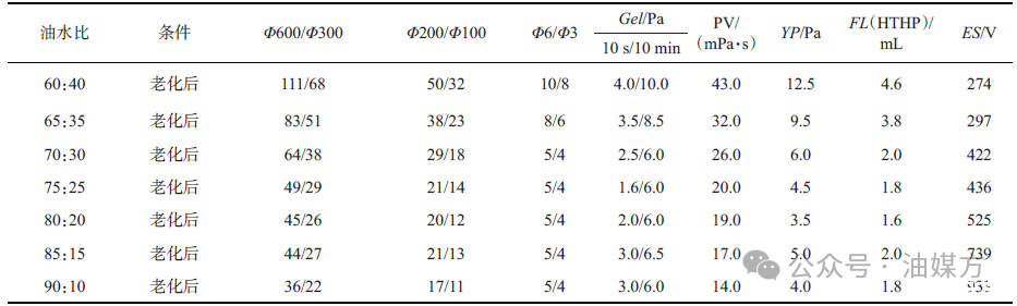 構(gòu)建的環(huán)保非水基鉆井液,適用油/水比范圍寬,抗污染能力強(qiáng),抗溫達(dá)180℃,可用于環(huán)保要求嚴(yán)格的作業(yè)區(qū)域。但是難以應(yīng)對(duì)溫度高于180℃井的作業(yè)需求,因此,仍需繼續(xù)研究抗溫性更強(qiáng)的環(huán)保乳化劑來滿足作業(yè)需求。