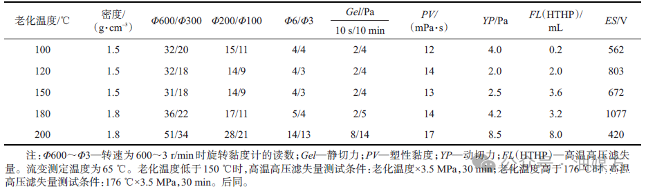 (1)密度、老化溫度對(duì)鉆井液性能影響