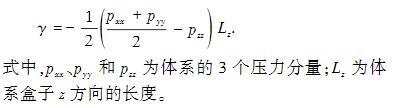 每個(gè)模型都經(jīng)過100 ns的MD模擬,保證油水界面充分達(dá)到平衡狀態(tài),油水界面張力的計(jì)算采用50 ns的數(shù)據(jù),通過3次獨(dú)立模擬獲得界面張力數(shù)值。本文中對界面張力(IFT)的計(jì)算方法選用Gibbs界面張力計(jì)算法,模型中油水界面位于XY平面內(nèi),界面張力計(jì)算公式為