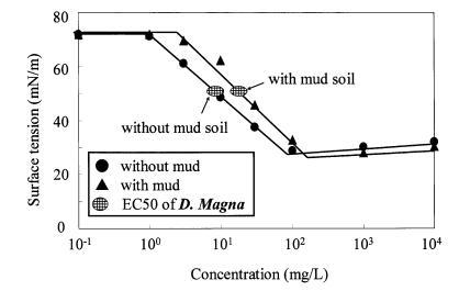 圖 13 泥土存在對(duì)地表的影響 AS和有毒表面張力的張力曲線 Daphnia Magna 的價(jià)值。