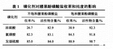 表1磺化劑對(duì)腰果酚磺酸鹽收率和純度的影響