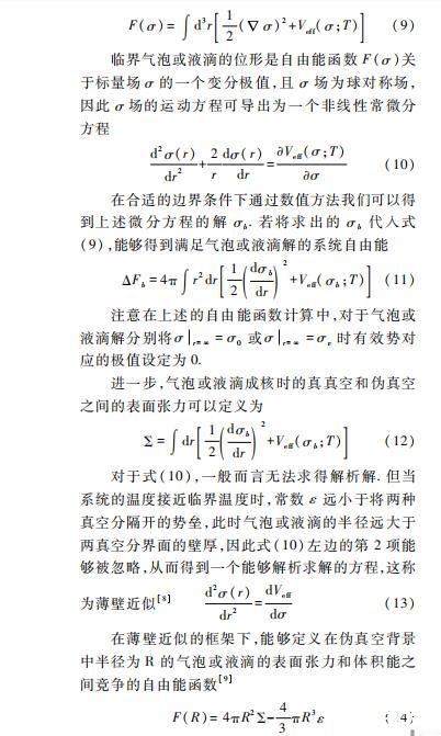 在上述對氣泡動力學(xué)研究的理論分析中,標(biāo)量場σ的真空平均值可以看做序參數(shù),并且系統(tǒng)的自由能函數(shù)能夠被定義為