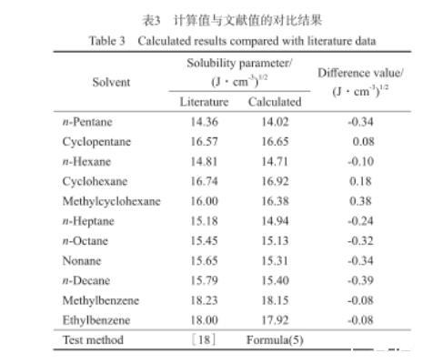 2.2淺色礦物油溶解度參數估算值的驗證