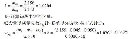 銀含量以質(zhì)量分?jǐn)?shù)wAg計(jì),數(shù)值以%表示,按下式計(jì)算: