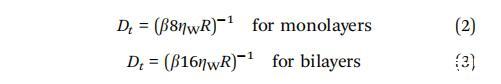 其中 ZW = 0.001 N sm? 2 是水的粘度,Zm 是 二維膜粘度,R是半徑 正在分析的域。 對(duì)于雙層,包括因子二 在分母中,因?yàn)樗嬖谟诜帜傅膬蓚?cè) 膜.54