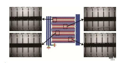 目前制約微流控技術(shù)實(shí)際應(yīng)用的重要因素是其處理通量低,無法滿足實(shí)際工業(yè)生產(chǎn)的需求。以上述微通道中萃取稀土離子為例,該過程連續(xù)相的流量?jī)H為4mL/min,顯然不能滿足大量浸礦廢水處理的需求。目前關(guān)于微萃取設(shè)備的放大主要有兩種途徑。其中,微通道并行放大是大規(guī)模生產(chǎn)乳液和氣泡的一種常用可靠途徑。Jeong和Chen等設(shè)計(jì)了一種并行聚焦流微通道用來制備氣液液雙乳液,實(shí)現(xiàn)了在10cm×10cm的PDMS上并行了400個(gè)聚焦流微通道(圖7)。雙乳液的生產(chǎn)通量可達(dá)3L/h,可在1h內(nèi)制備1011個(gè)高度單分散的中空液滴。利用該設(shè)備進(jìn)行稀土離子的萃取結(jié)果表明相比于單一微通道結(jié)構(gòu),該設(shè)備的處理通量提高了10倍,且稀土離子的萃取率可在數(shù)秒內(nèi)提高至98%以上。本文作者所在的研究團(tuán)隊(duì)發(fā)明的膜分散微萃取設(shè)備同樣可以實(shí)現(xiàn)微通道萃取設(shè)備的有效放大,對(duì)于膜分散微萃取設(shè)備,其分散介質(zhì)為含有眾多規(guī)則排列微孔的不銹鋼薄膜,每個(gè)微孔相當(dāng)于一個(gè)微通道,其處理量可提高到200mL/min;該團(tuán)隊(duì)進(jìn)一步發(fā)明多通道膜分散微結(jié)構(gòu)設(shè)備,已經(jīng)成功應(yīng)用到萬噸級(jí)/年處理量的氣體吸收和液液萃取過程,為稀土萃取回收過程放大提供了堅(jiān)實(shí)的基礎(chǔ)。從氣液液微分散萃取過程的放大研究進(jìn)展來看,處理通量已經(jīng)不再成為制約其發(fā)展的問題,多通道膜分散微萃取設(shè)備有望實(shí)現(xiàn)高通量快速富集回收稀土離子的目標(biāo)。