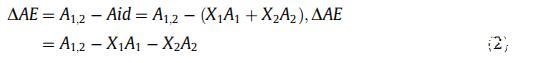 其中 A1,2 是 mma,Aid 是理想的混合單層,X1 和 X2 分別是組分 1 和 2 的摩爾分?jǐn)?shù)。 A1 和 A2 是相同表面壓力下每分子純單分子層的相應(yīng)面積。 DAE 值變?yōu)榱?當(dāng)物質(zhì)形成理想混合物或不混溶時(shí) (瓊斯和查普曼,1996 年)。