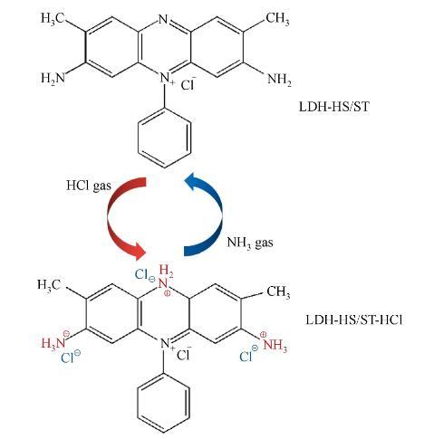 圖5 HCl和NH3氣體對(duì)LDH-HS/ST LB復(fù)合膜的化學(xué)反應(yīng)機(jī)理