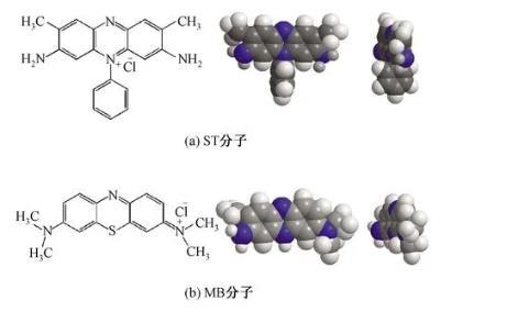 圖6 ST和MB染料分子結(jié)構(gòu)圖及空間模型