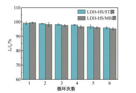 圖7兩種不同的LDH-HS/染料LB膜的循環(huán)穩(wěn)定性表征