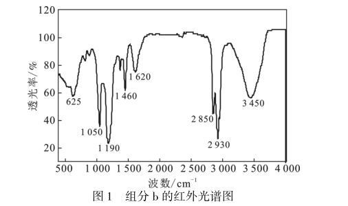 1.2.3石油磺酸鹽活性物的極性分離固定相硅膠在120℃活化6 h。層析柱(內(nèi)徑25 mm,長200 mm)填充硅膠高度為100 mm?;钚晕锷现孟疵搫┻M(jìn)行洗脫。洗脫順序:CCl4→正丁醇→乙醇→去離子水,依次洗脫得到組分a、b、c、d。