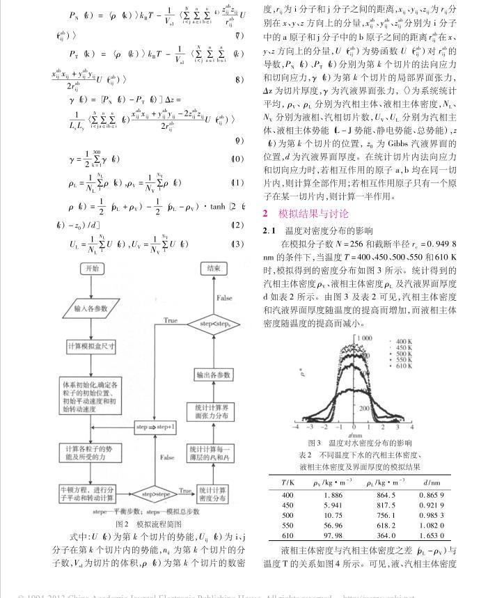 溫度、截斷半徑、模擬分子數(shù)對水汽液界面特性的影響規(guī)律(一)
