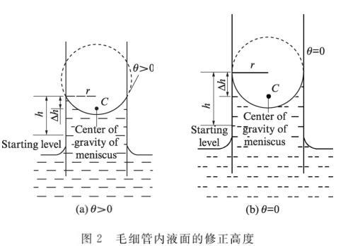 圖2毛細管內(nèi)液面的修正高度