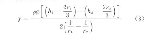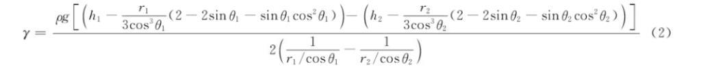 將Δh代入表面張力計算公式,得到式(2):