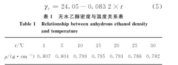 表1無水乙醇密度與溫度關(guān)系表