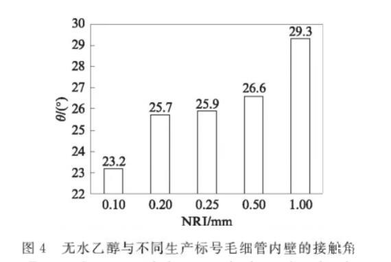 圖4無水乙醇與不同生產(chǎn)標(biāo)號毛細(xì)管內(nèi)壁的接觸角
