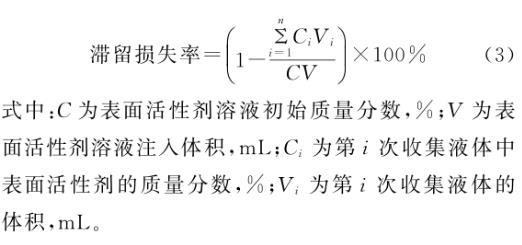 式中:C為表面活性劑溶液初始質量分數(shù),%;V為表面活性劑溶液注入體積,mL;Ci為第i次收集液體中表面活性劑的質量分數(shù),%;Vi為第i次收集液體的體積,mL。