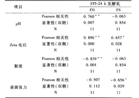 表1 pH值、Zeta電位、黏度、表面張力與蛋液起泡性質(zhì)之間的相關(guān)性分析