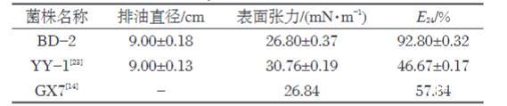 2.1解烴菌BD-2產(chǎn)生的生物表面活性劑性能