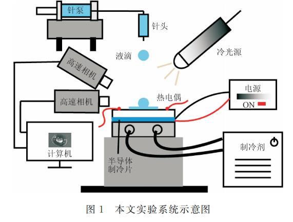 盡管如此,目前針對低表面張力液滴沖擊過冷水平壁面的研究仍有所欠缺。液滴在過冷表面上的沖擊和應用在生活中也十分常見,例如噴霧凍結(jié)、高空中的過冷水滴沖擊機翼導致結(jié)冰、過冷噴涂等。本文針對乙醇液滴沖擊過冷親水水平壁面這一基本物理現(xiàn)象開展實驗,針對其鋪展動力學行為進行分析與討論,旨在探究低表面張力對液滴沖擊過冷水平壁面的鋪展動力學行為的影響。這一研究有助于加深對固液接觸現(xiàn)象的理解,為更好的控制固液介面接觸提供有效指導。