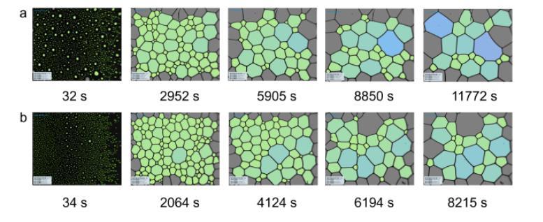 圖5(a)1 g/L C72-MPB和(b)2 g/L C72-MPB表面活性劑溶液從泡沫峰值高度后的不同時(shí)間的泡沫形態(tài)
