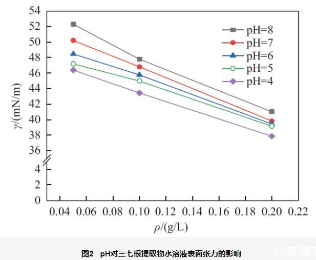 不同質(zhì)量濃度、pH、鹽度對三七根提取物水溶液表面張力的影響(二)