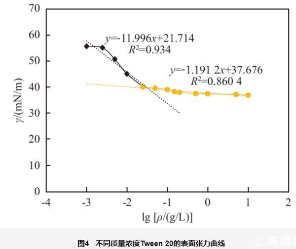 2.2 Tween 20水溶液的表面張力和臨界膠束濃度