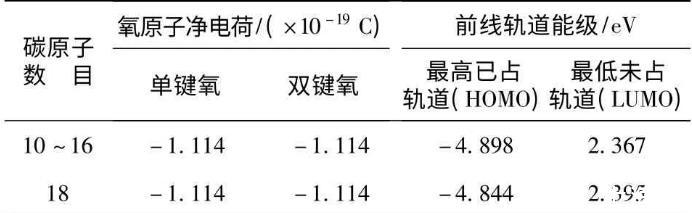表2不同飽和度的羧酸的氧原子凈電荷及軌道能級(jí)
