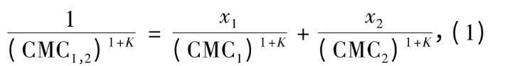 同系列表面活性劑混合后的臨界膠團(tuán)濃度(CMC1,2)可由下式計(jì)算: