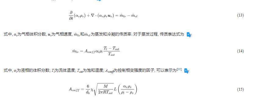 和為蒸發(fā)和冷凝的傳質(zhì)率。對于蒸發(fā)過程,傳質(zhì)表達式為