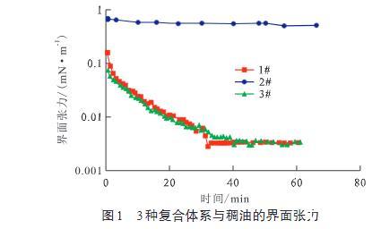圖1 3種復(fù)合體系與稠油的界面張力