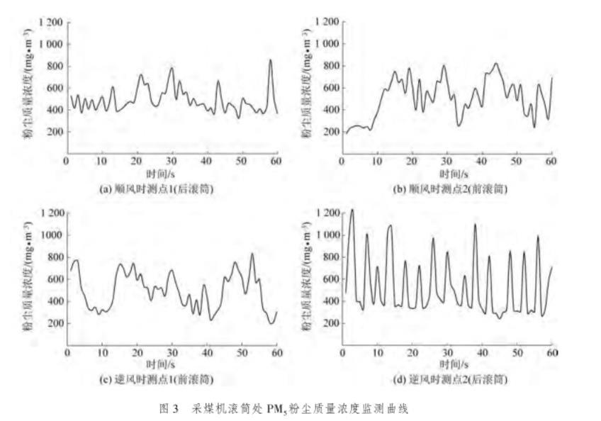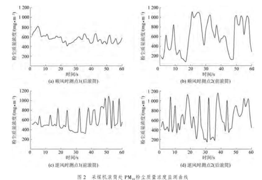 圖2采煤機滾筒處PM10粉塵質量濃度監(jiān)測曲線