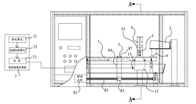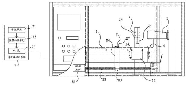 [0018]在一些實(shí)施方式中,還包括清洗液供應(yīng)系統(tǒng),清洗液供應(yīng)系統(tǒng)包括凈化單元、恒溫加熱單元和泵體。清洗液通過凈化單元凈化并通過恒溫加熱單元進(jìn)行加熱后,再經(jīng)由泵體供應(yīng)到清洗槽當(dāng)中。其有益效果是,先通過凈化單元,可以預(yù)先清除掉清洗液當(dāng)中可能存在的油。另外,通過恒溫加熱單元可以將清洗液加熱到一定的溫度。因?yàn)闇責(zé)釥顟B(tài)的清洗液,可以實(shí)現(xiàn)更加的油脂清除能力,從而可以將樣品上的油更方便且更完全的清洗下來。