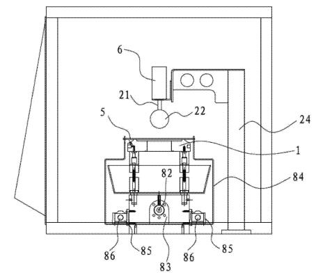 [0013]其有益效果是,在使用的時(shí)候,可以在清洗槽當(dāng)中放滿清洗液,清洗液通常采用清水即可,或者也可以采用其它可將油脂從樣品當(dāng)中洗下來的液體。通過樣品固定單元可以將板材樣品固定住,然后做升降運(yùn)動(dòng),即將樣品向清洗液當(dāng)中做若干次的浸沒操作,從而將樣品當(dāng)中的油清洗下來。