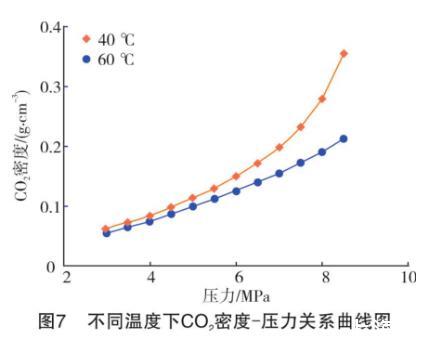 (3)溫度對界面張力隨壓力的影響存在一個關鍵壓力點。在實驗壓力為3.5 MPa之前,40℃的界面張力值要高一些;在3.5 MPa之后,60℃的界面張力值更高。通過分析得出,在關鍵壓力點之前,溫度的熱效應占主導作用;關鍵壓力點之后,溫度通過影響氣體密度和氣液密度差間接地影響界面張力值,取代溫度的熱效應而成為主導因素。