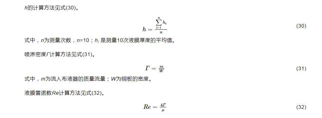 液膜雷諾數(shù)Re計(jì)算方法見(jiàn)式(32)。