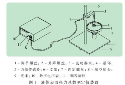實(shí)驗(yàn)所用的液體表面張力系數(shù)測定儀主要由實(shí)驗(yàn)裝置和數(shù)字電壓表組成,如圖1所示。