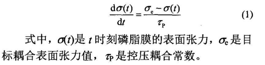 式中,σ(t)是t時(shí)刻磷脂膜的表面張力,σe是目標(biāo)耦合表面張力值,τP是控壓耦合常數(shù)。