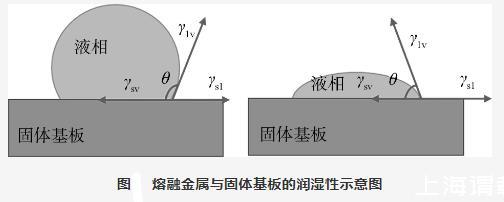 圖1熔融金屬與固體基板的潤(rùn)濕性示意圖